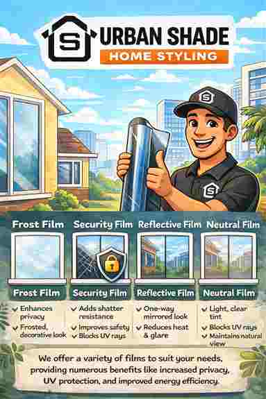 Urban Shade brings style, comfort, and efficiency to Edmonton homes and businesses with premium window and architectural films. Our locally owned team delivers privacy, UV protection, and a refined finish built to last.Product Images:
